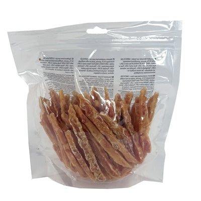 De I Am Chicken Strips is een heerlijke, eiwitrijke snack gemaakt van maar liefst 94,5% kipfilet. De malse strips zijn licht gedroogd, waardoor ze hun natuurlijke smaak behouden en een sappige textuur krijgen die honden graag kauwen. Ideaal als smakelijke beloning tijdens het trainen of gewoon als tussendoortje. Dankzij het lage vetgehalte passen deze strips perfect binnen een gebalanceerd voedingspatroon.