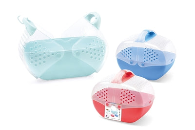 Neem jouw cavia, hamster, chinchilla of ander klein dier mee in deze kleurige transportbox. De bovenkant van de box open je net als een handtas: klik de helften van elkaar af. Dicht doe je hem door de helften tegen elkaar te zetten en de veiligheidsklem vast te klikken. Zo kun je jouw kleine dier met je meenemen.