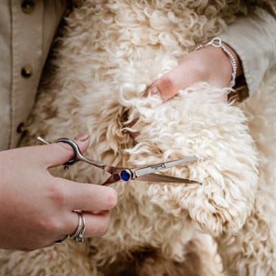 - Kop en Poten schaar om thuis de vacht te trimmen
