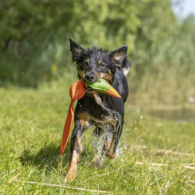 Deze Trixie Eend Drijvend Polyester Oranje van 50 cm is leuk zomers speelgoed voor jouw hond, ook geschikt voor waterpret! Deze eend is gemaakt van polyester en is plat van vorm. Door deze combinatie drijft de eend volledig op het wateroppervlak. Zo is hij, met zijn oranje kleur, goed zichtbaar en door de platte vorm kan jouw hond hem makkelijk pakken wanneer hij op het water drijft. Ideaal dus voor spelen en apporteren op het strand of op vakantie! Om de eend extra aantrekkelijk te maken, is hij ook nog eens voorzien van geluid. Gegarandeerd plezier dus deze zomer!