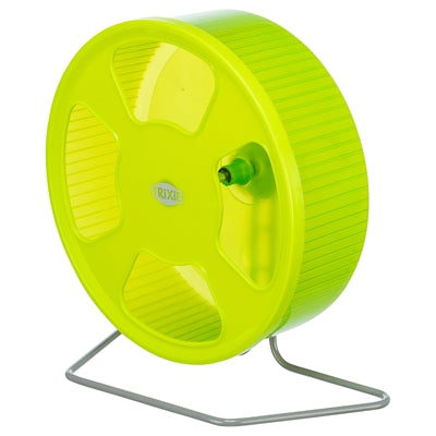 Het Trixie Looprad Kunststof Assorti 20 cm is een loopwiel van groot formaat voor muizen en dwerghamsters, voor minimale belasting van de wervelkolom en bewegen zonder geluidsoverlast. Veel dieren belasten de wervelkolom teveel tijdens het lopen in een loopwiel, omdat zij gebogen moeten lopen in een te klein wiel. Door het royale formaat van dit wiel is dat niet langer aan de order. De wervelkolom wordt minimaal belast omdat het dier veel rechter kan lopen en het gesloten loopgedeelte zorgt voor veilig rennen. Het wiel is gemaakt van kunststof voor makkelijk reinigen en loopt soepel en fluisterstil, ideaal omdat muizen en hamsters nachtdieren zijn. Het wiel is met de houder rechtop in de kooi te zetten, maar ook aan de tralies te bevestigen.