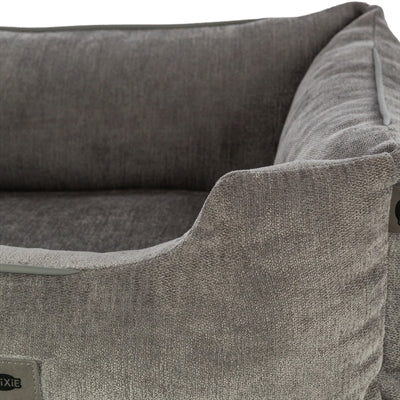 De Trixie Vital Hondenmand Lennox Hoekig Grijs is een stijlvolle en orthopedische ligplaats voor honden die zorgt voor maximaal comfort tijdens het rusten. De mand is bekleed met meubelstof van chenille, wat zorgt voor een luxe uitstraling en een aangename zachtheid. Het 2-lagen-systeem met een ligoppervlak van visco-elastisch schuim en comfortschuim past zich aan het lichaam van de hond aan en ondersteunt gewrichten en wervelkolom. De vormstabiele rand met schuimrubber en polyesterwattenvulling biedt een stevig ligkader. De afneembare hoes is wasbaar op 40°C, en de slipvaste onderkant zorgt ervoor dat de mand goed op zijn plek blijft liggen.